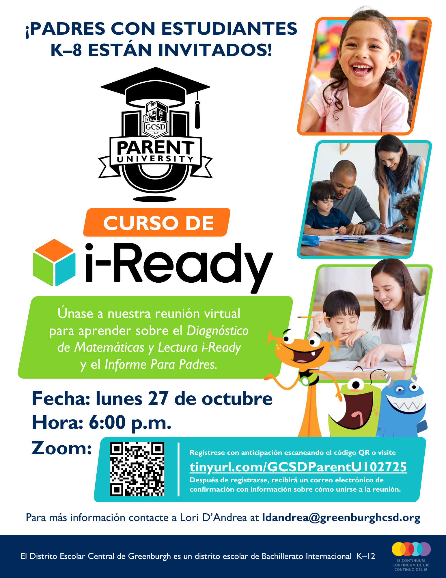 Regístrese con anticipación: tinyurl.com/GCSDParentU102725