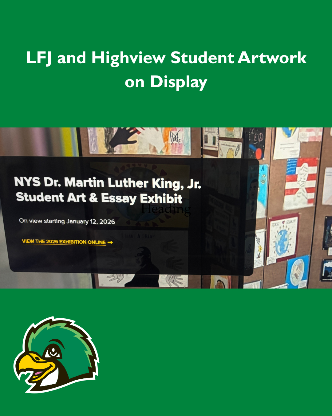 Participation in initiatives like the MLK Student Art & Essay Exhibition reflects the District’s commitment to educating the whole child. As International Baccalaureate schools, Lee F. Jackson and Highview emphasize inquiry, reflection, and principled action—encouraging students to think critically about the world around them and their role in creating a more just and compassionate society. Through this work, students are not only learning about history, but also practicing the values that Dr. King championed. See the artwork here: https://empirestateplaza.ny.gov/2026-nys-dr-martin-luther-king-jr-student-art-essay-exhibition
